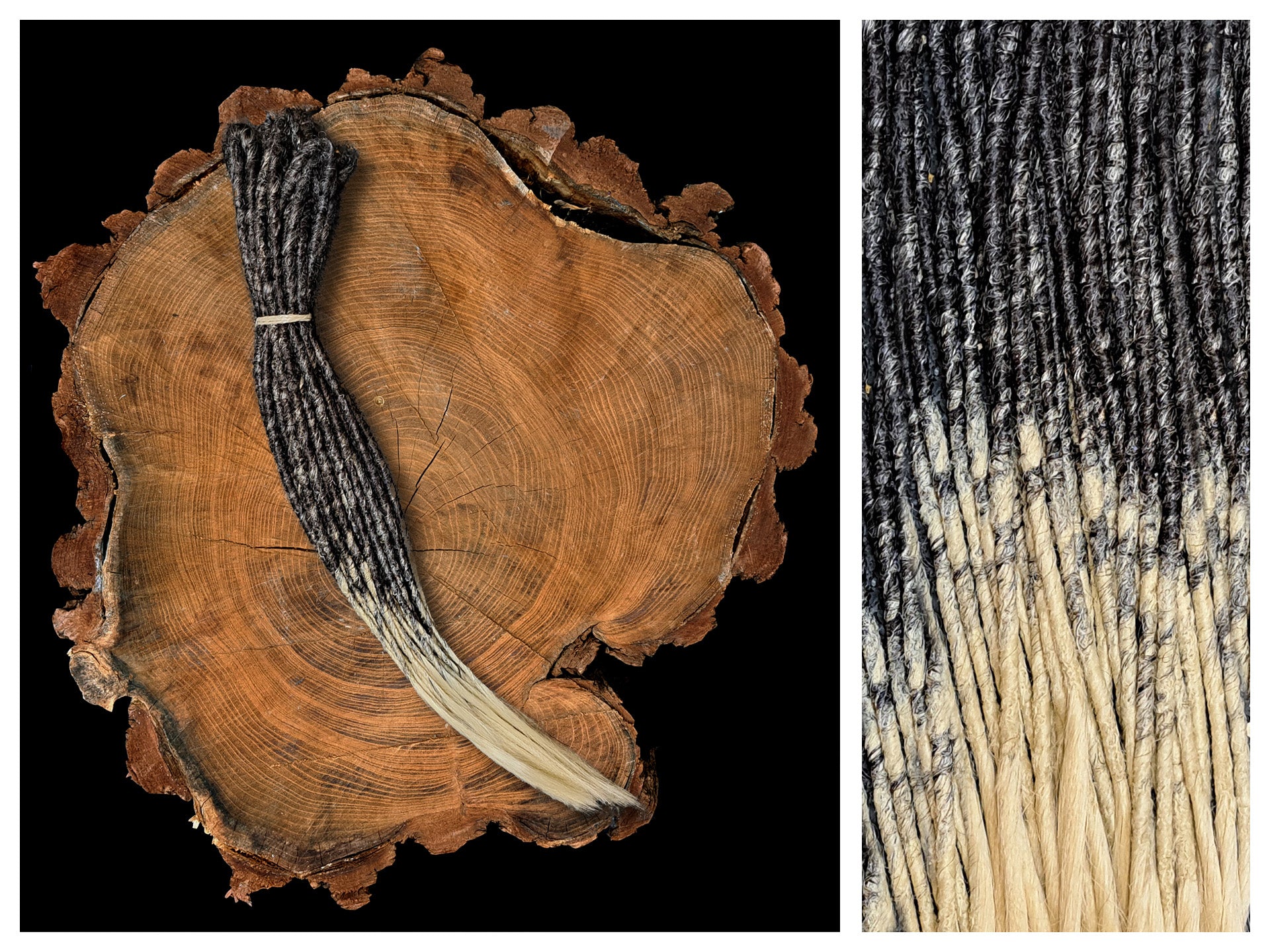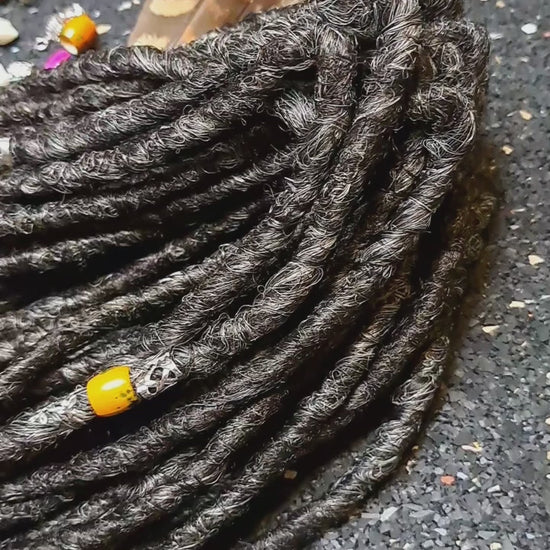 Unsere Kunsthaar Extensions bestehen aus hochwertigen Syntheticfasern, die in liebevoller Handarbeit zu Dreadlocks verarbeitet werden. Sie besitzen eine täuschend echte Struktur, die deinen eigenen Haaren ähnelt und ein harmonisches Bild ergibt. Die Extensions sind so gestaltet, dass sie natürliche Dreadlocks nachahmen und nicht wie glattes Plastikhaar wirken. Du kannst zwischen Single und Double Ended Dreadlocks in verschiedenen Farben und Ausführungen wählen und sie einfach in dein eigenes Haar einflechten, ohne es dabei zu schädigen.